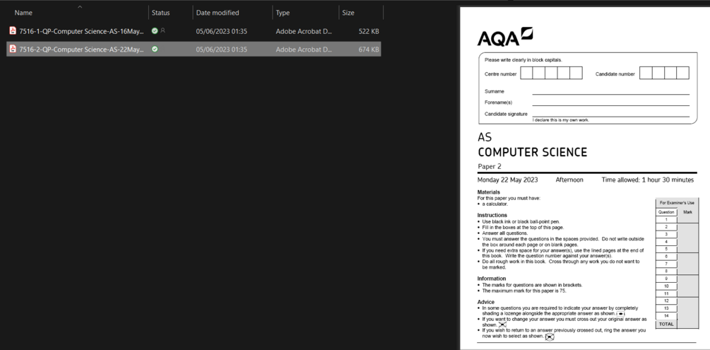 Computer Science - AQA AL Level May/June 2023 papers £4£4https://schema.org/InStockgbpMaryam0 ratingsfor immediate downloadI want this!